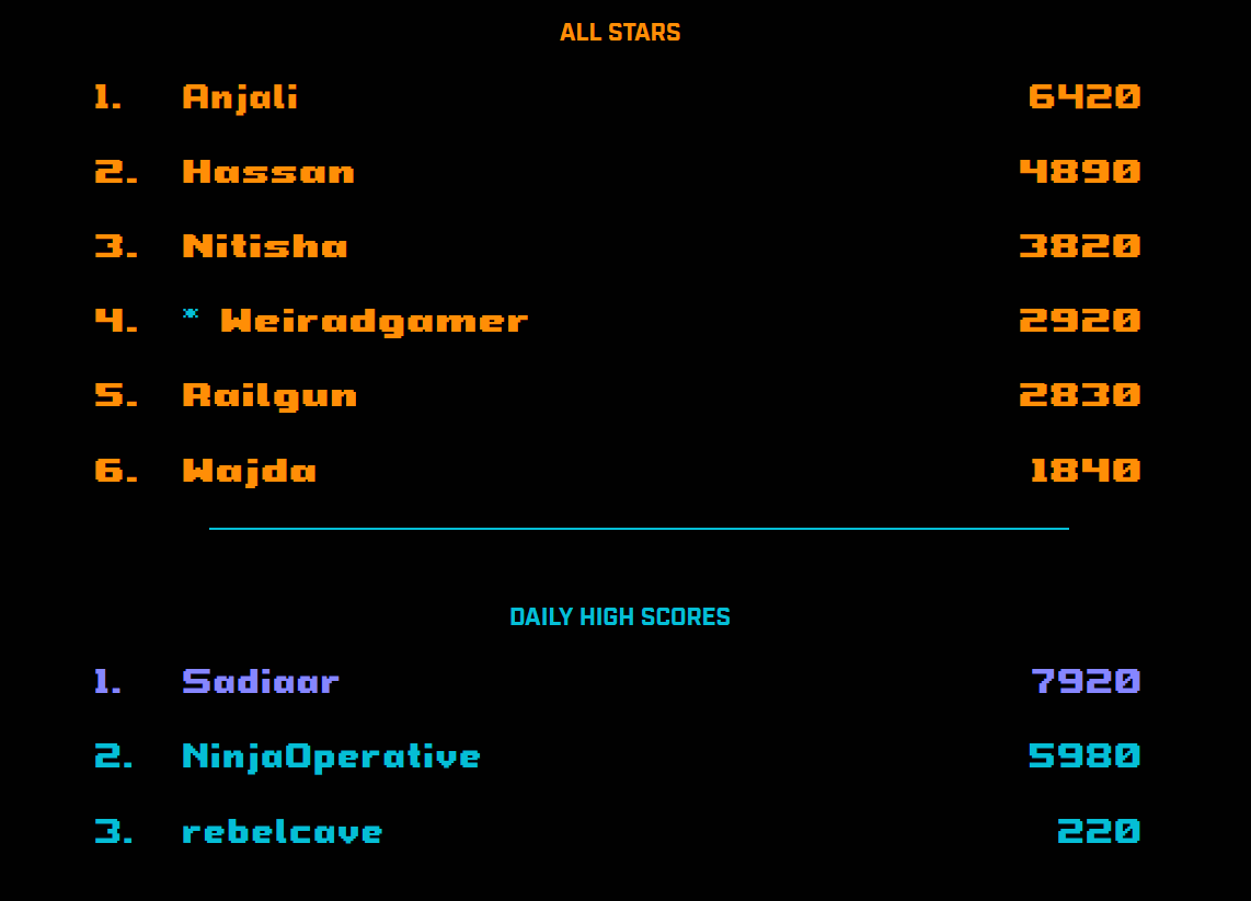 January 22nd High Scorer Weiradgamer!